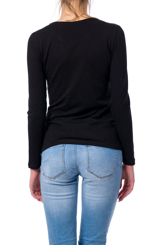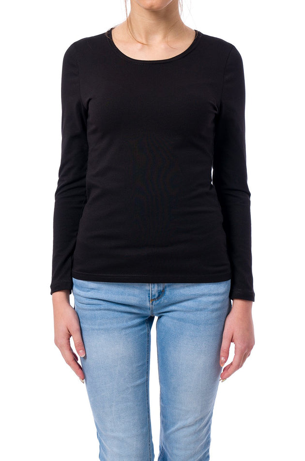 Тази ежедневна памучна блуза с дълъг ръкав, обло деколте и вталена линия е перфектният избор за всеки гардероб, като предлага стил и универсалност.