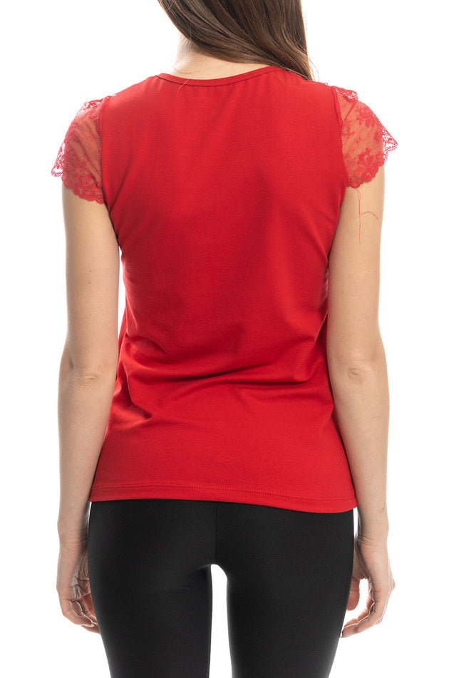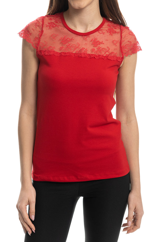 Червена памучна блуза с бродирана дантела 5423