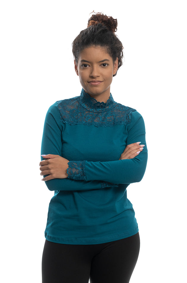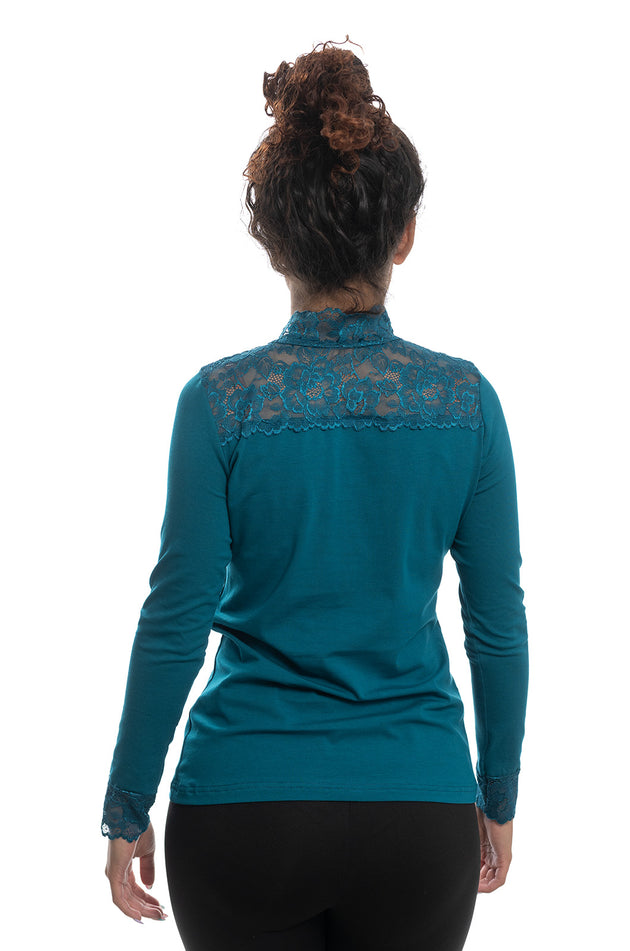 В момента гледате таблица за Петролена памучна блуза от фестонирана дантела 5426.