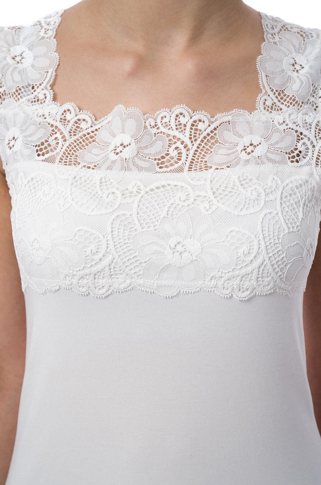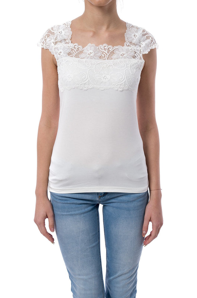 Правоъгълното деколте е декорирано с дантела в същия цвят, която придава допълнителен акцент към горната част. Блузата е леко вталена и има приятна линия, която придава елегантност и стил. Този модел блуза е подходящ за носене в различни ситуации - от ежедневието до специални поводи. Тя е лесна за комбиниране с различни дрехи и аксесоари.